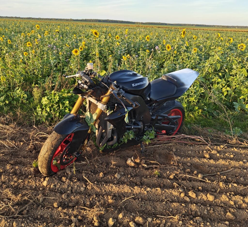 H-114 Mardi, chez PingouiN, le break est chargé, la remorque aussi. Chez Ossamoual, test routier suite à la suppression des papillons secondaires et de la chicane sur la Kawa, la moto cabre puis, souhaite retourner à la terre et finit donc dans un champ (avec Ossamoual dessus)