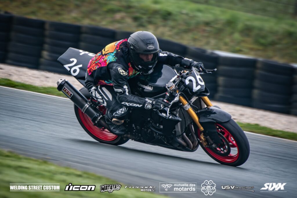 H-44h10m session chez les lents, PingouiN a oublié de coller l’autocollant de la session et la gentille (ironie) commissaire lui lance un « Hé bah il va retourner à sa maison et revenir avec son autocollant » vu l’état de l’animal, elle est joueuse la dame ! Ossamoual fait des ronds, apprend à dompter le circuit et sa monture, double des gens. La CBR tourne correctement, jusqu’à ce qu’elle broute, même à hauts régimes.
